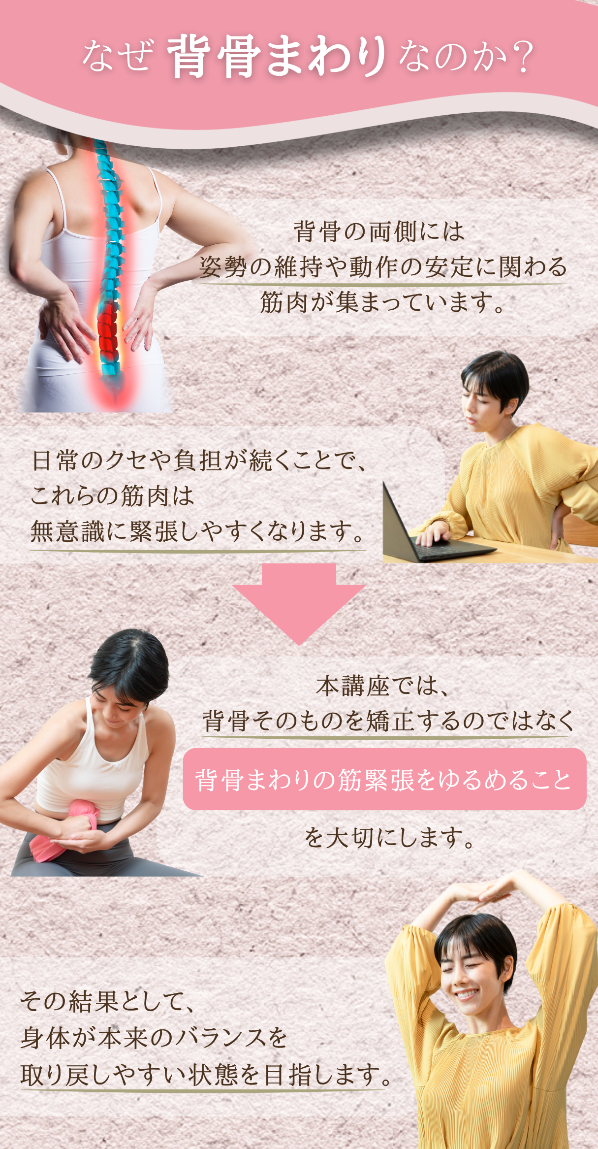 背骨まわりの緊張を解放することで、